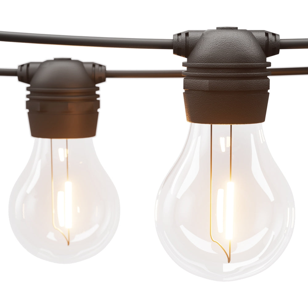 Brighten your home this festive season with 2pcs 17m Festoon String Light set The lights are powered by a high-conversion solar panel, or you can charge them via USB. An auto light sensor saves you power by automatically turning it on at night and off during the daylight. The string lights provide four lighting modes (steady light, slow flash, fast flash, and burst flash) to create the desired lighting ambience for any occasion. Better still, each bulb draws a very low voltage and is placed 90cm equally apart from each other throughout its length for an even distribution of illumination and brightness. Not least, every bulb has a 20,000-hour lifespan for extra durability and long-lasting use. The lights can be used both indoors and outdoors. Illuminate your home with the bright and mellow glow of the Festoon String Light set.