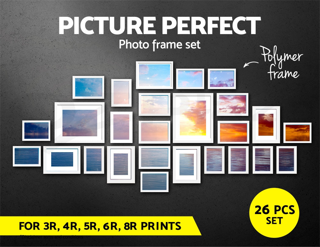 Every picture tells a story. And we are sure your extensive photo collection has lots to tell. So why not frame up the interesting ones on the wall and share the stories behind them to friends and family. You can do that beautifully with our charming Photo Frame Set. Available in a set of 26, our set allows your walls to be graced with fascinating stories and memorable moments from your treasured photographs. Arrange them in any way you like. Portrait or landscape, the framed photo feature wall is a conversational piece in its own right. Suitable for a range of photograph sizes from 3R to 8R, the frames feature a durable polymer construction with a polystyrene glass to keep your prints in good shape. The hardboard backing is also moisture-resistant. Hanging accessories are also included with your purchase.
