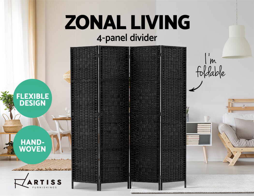 When you need instant private space, our 4-panel room divider helps create dedicated zones in the most hassle-free way. With its exotic and elegant design, our elegant panel divider certainly stands out from the looks of mundane dividers. Made from solid poplar wood, the divider is non-toxic, fade-resistant, waterproof and breathable. As for panels , they're beautifully crafted from rolled paper that mimics rattan look and feel. Lightweight and yet sturdy, our room divider utilises 2-way metal hinges to cope with robust use. Not least, the panels are also easily foldable for space saving storage.