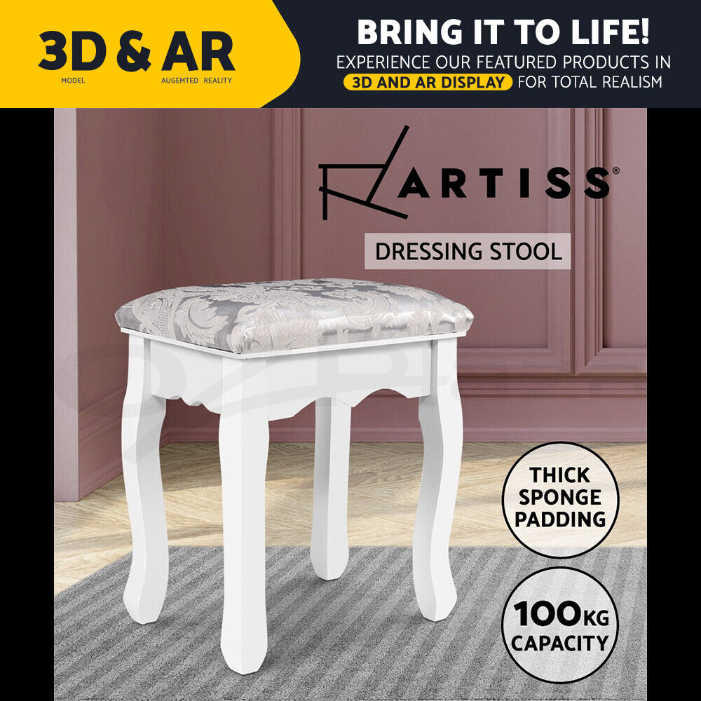 Add a touch of classical charm to your bedroom with our luxurious period-style Artiss Dressing Stool. Graceful and elegant, the stool exudes finesse in every corner and aspect. Much like yourself as you prepare for the day in alluring beauty. And with this dressing stool, you can do so in both comfort and style. Made with meticulous craftsmanship, the dressing stool is upholstered in beautifully embroidered linen fabric and padded with extra thick sponge for luxurious comfort, so that you can better focus on applying your make-up rather than be distracted by your sore backside. The stool also features elegantly curved cabriole legs and anti-slip feet to keep your floors pristine from scratches and damage. Best of all, the dressing stool can be perfectly paired with your dressing table, no matter the style.
