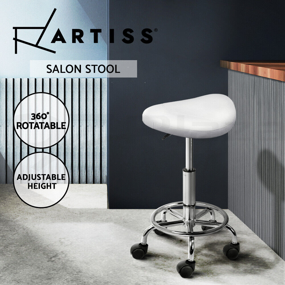 Looking to add a glamourous touch to your salon? You can do it effortlessly with the Artiss' gorgeous salon stool. It's not just for a salon, but you can use these stools in your tattoo parlour, medical clinic, cafe, and music studio. Our salon style stools will instantly give your space a stylish and modern look. These stools are designed for ultimate comfort and convenient use. It features a saddle seat design that makes you feel comfortable even if you've been sitting for long hours. The thick foam padding makes the seat soft, and the PU leather upholstery with a light sheen highlights its alluring texture. Our salon stool also has five nylon smooth castor wheels that offer easy manoeuvrability. The seat is 360° rotatable, enabling you to face any direction. It also comes with a heavy-duty footrest and base for added stability and comfort. You can even adjust its height with an SGS-certified gas lift lever. So why wait? Purchase this beautifully designed salon stool. You won't regret it.