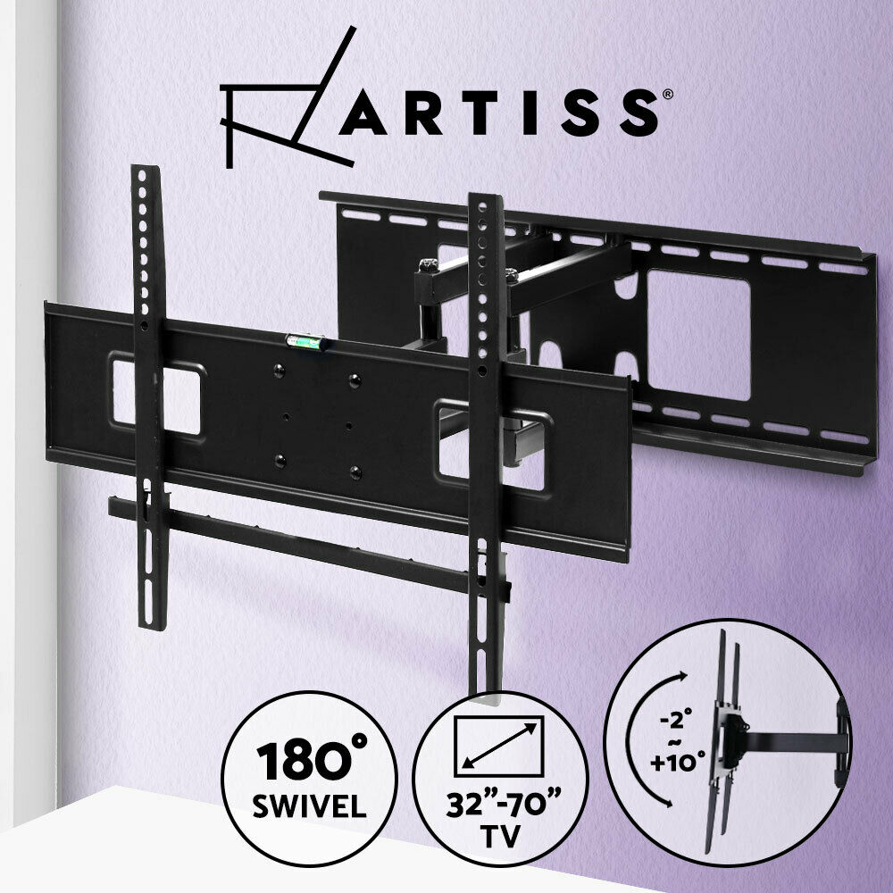 Short of space for your TV? Perhaps our Artiss TV Wall Mount can help. Our TV wall mount features a 1.5mm thick powder-coated iron frame that can handle a maximum weight of up to 50kg. The slimline mount allows for various VESA measurements to fit TV screens from 32 inch to 70 inch easily. Better still, the mount allows for tilt and swivel so that you can adjust your TV to suit your most comfortable eye line for more enjoyable viewing. Plus, the six-arm frame also enables the TV to be extended or retracted when required. Suitable for concrete or brick wall use, the Artiss TV Wall Mount is definitely the way to space-saving epic TV entertainment.