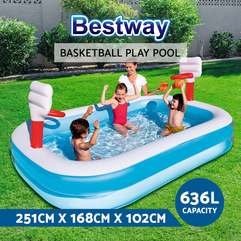 Your children will be making a splash among their friends this summer with the Bestway Basketball Play Pool. With its 2-ply design, the pool is strong and sturdy and stands up to robust play with minimum hassle. The pre-tested vinyl material is also durable and safe for kids. Better still, the pool also features two basketball nets and includes two balls for a whole lot of shooting and dunking fun. And once the fun and games is over, just release the easy-to-drain safety valve to empty the pool and store until the next play day. Not least, a heavy-duty repair kit is also included. Packaged in a colourful box, the pool is recommended for kids 3 years and above.