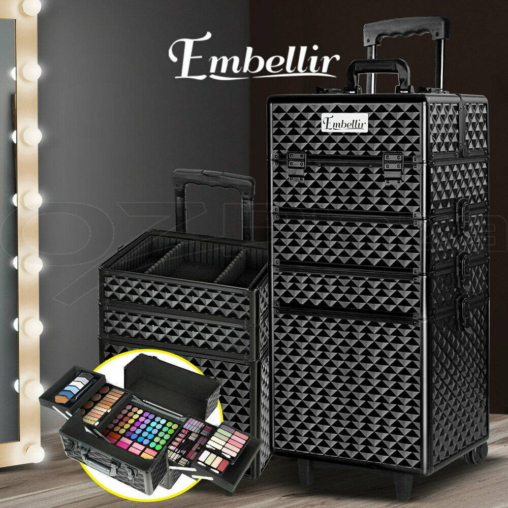 7 in 1 Portable Beauty Make up Cosmetic Trolley Case Diamond Black