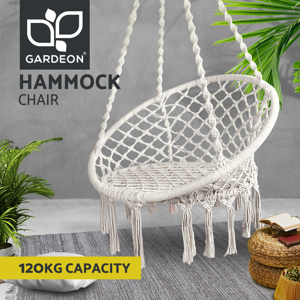 Relax in style and comfort with the Gardeon Hammock Chair. Perfect for both indoor and outdoor use, this beautifully designed hanging chair adds a touch of bohemian charm to any space. Featuring hand-made tassels, a firm structure, and a durable yet soft polyester-cotton blend fabric, it provides the ultimate relaxation experience. The solid timber rail ensures stability, while its lightweight design makes it easy to hang anywhere. Ideal for enjoying a good book, soaking up the sun, or simply unwinding after a long day.