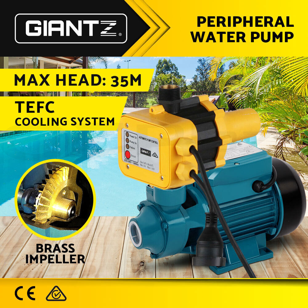 When low water pressure gets you down, power it up with our Peripheral Water Pump. Pumping out at a rate of 35L/min with a delivery head of 35m and suction up to 8m, it is the perfect solution where constant on-demand water pressure is needed at the open and close of any tap. Use it to pump your pool, increase water pressure in your pipes, water your gardens, irrigate, clean and more. The water pump features an IP-rated commercial copper motor, rust-resistant brass impeller, cast iron pump body, 1-inch inlet and outlet ports, efficient TEFC cooling system, mountable base and a power box that is both waterproof and dirt-proof. You can also accurately control the pressure to your precise requirements with the fully automatic controller and monitor it at a glance of the pressure gauge. Power to the pump is as simple as plugging it straight into any Australian standard socket. There is no need of any sophisticated knowledge of pumping, just a little imagination of how much you can do with it. It will pump up the water in no time.
