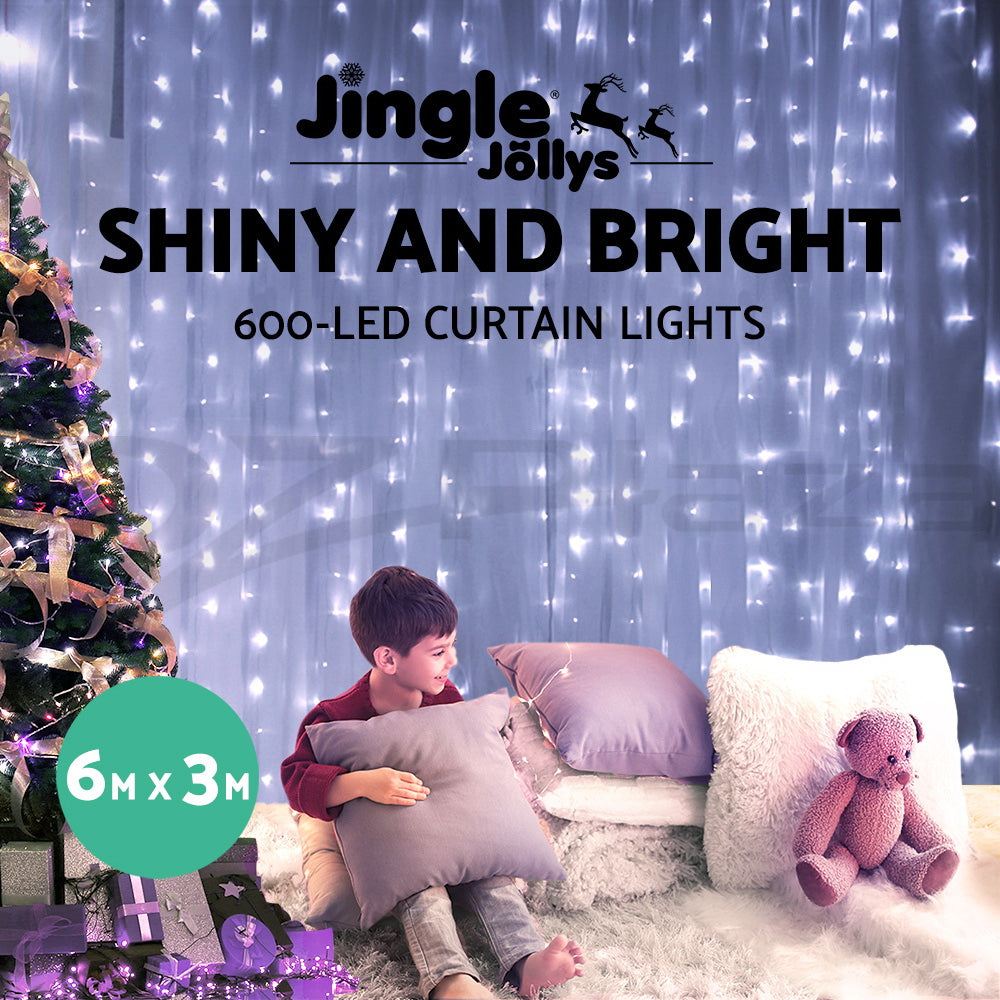 Experience the magic of romantic and stunning lighting scenes with our Jingle Jollys Curtain Lights. Whether for home decor, outdoor settings like backyard and deck adornment, or enhancing birthday parties and wedding celebrations, they are the ultimate option for illuminating any indoor or outdoor event. The ultra-bright LED bulbs remain cold white lit and can withstand various weather conditions. Spread cheer and delight this season with our Jingle Jollys Curtains Lights.