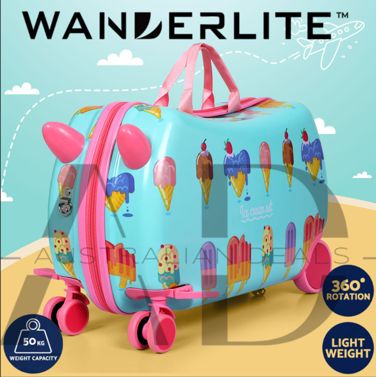 Wanderlite 17" Kids Ride On Luggage Children Suitcase Trolley Travel Ice Cream