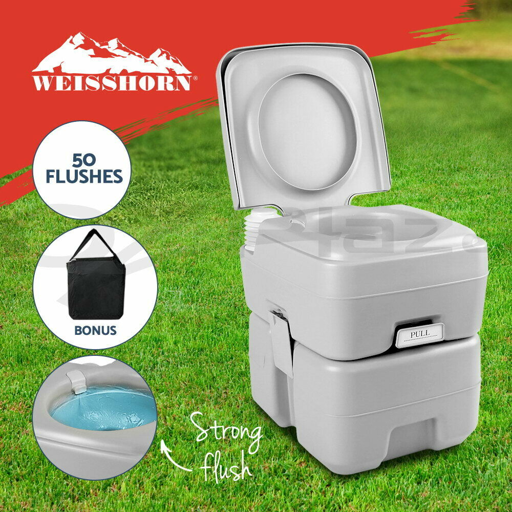 This Weisshon 20L Portable Camping Toilet features high quality construction and generous water reserves. The high-density construction makes it strong and durable. It is tough enough to handle the challenging conditions. It has a 12 Litre freshwater capacity providing 50 flushes without recirculating.