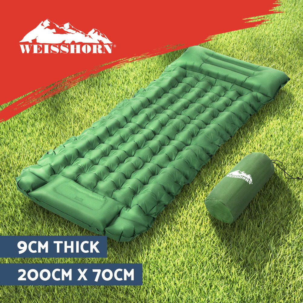 Looking for a comfortable night's sleep while camping? Look no further than the Weisshorn Self-inflating Mat. With its efficient self-inflating valves, the mat can quickly inflate in 50 seconds. The TPU-coated surface is durable and water-resistant, making it easy to clean and maintain on any surface. The 9cm thick mat with a built-in pillow provides comfortable support for sitting or lying down during your trip.